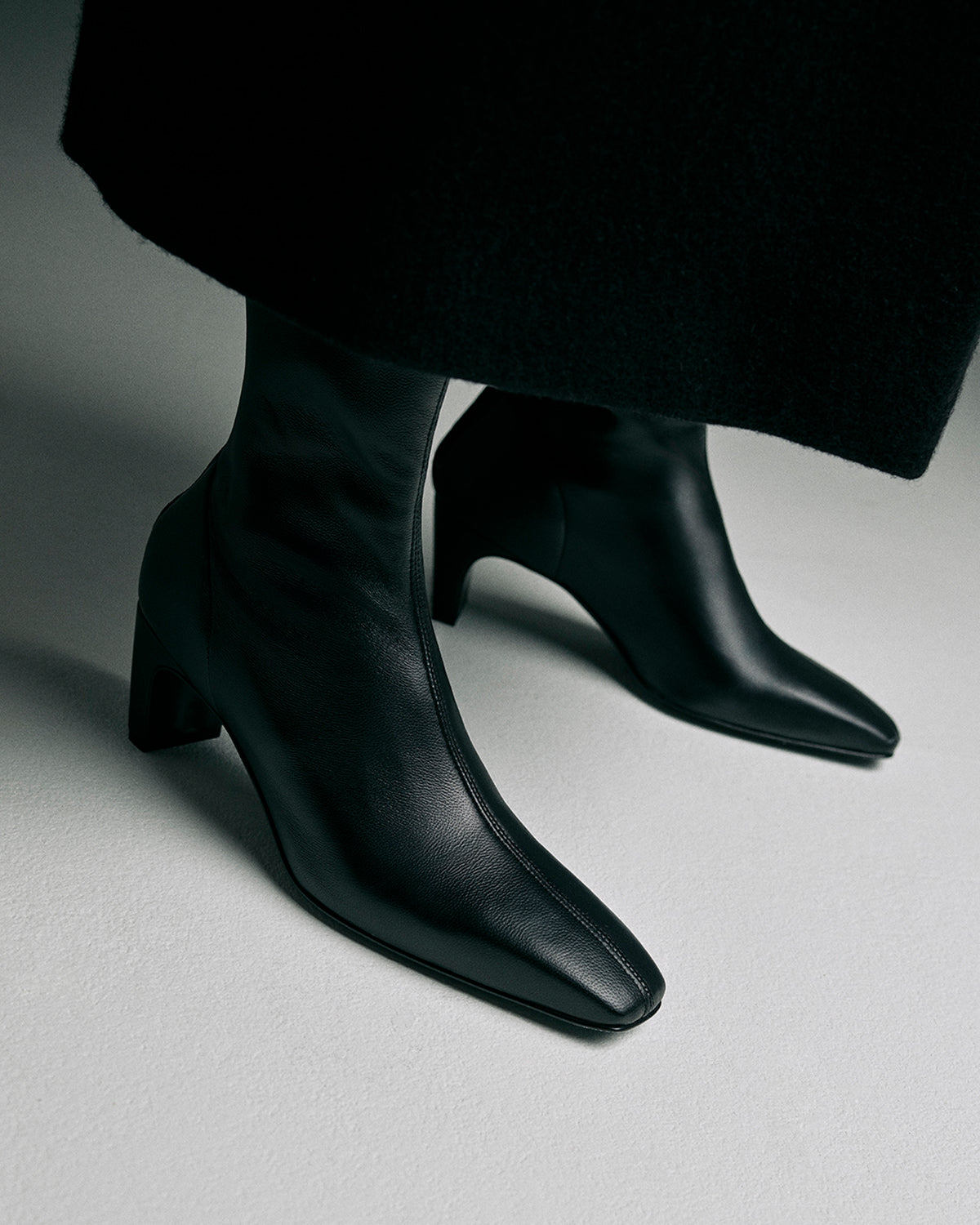 The Glove Boot is handcrafted in Italy using premium, stretch nappa leather in classic black. Subtle, thoughtful detailing includes a central seam that runs from top to toe, a back zip fastening and a structured square toe.