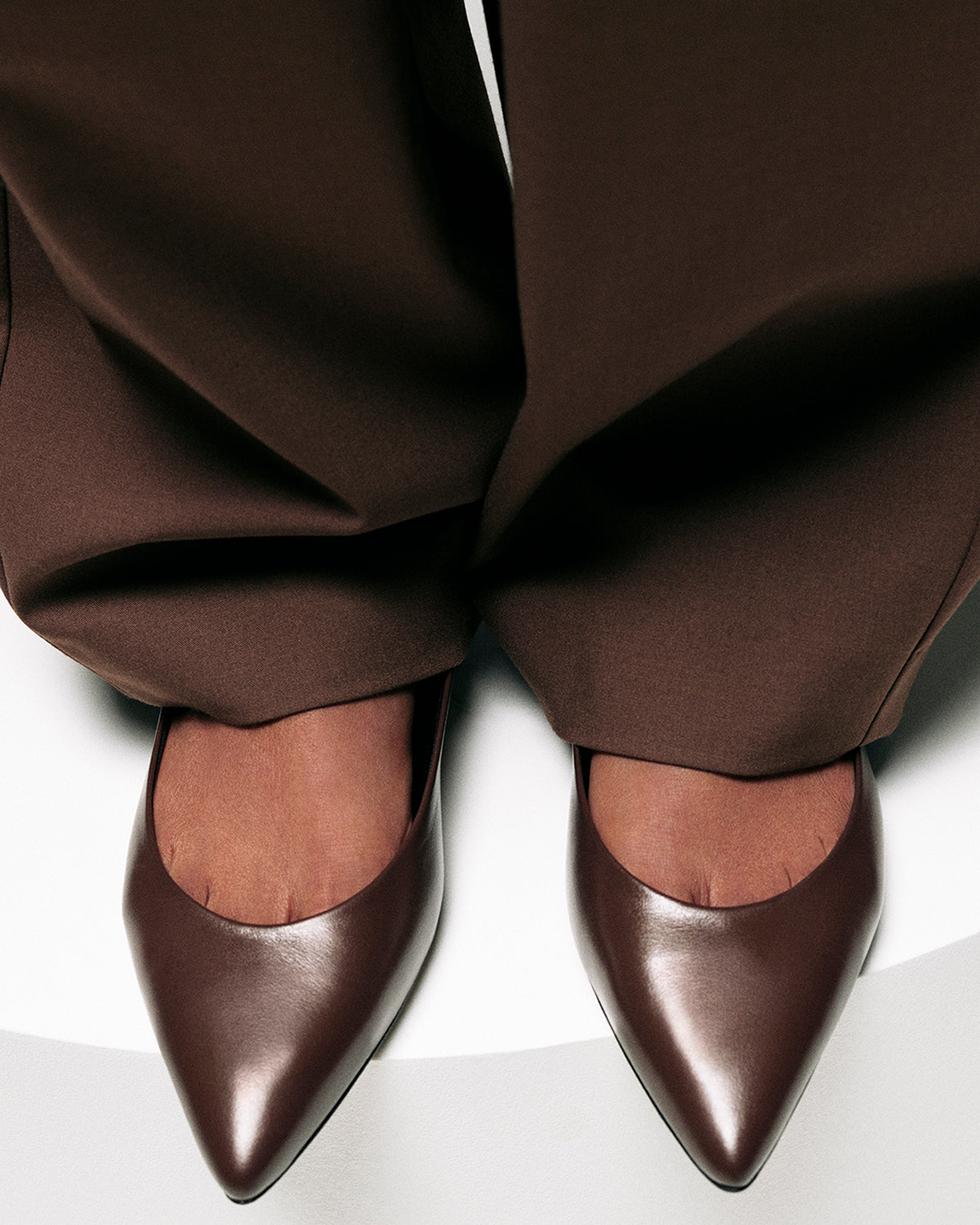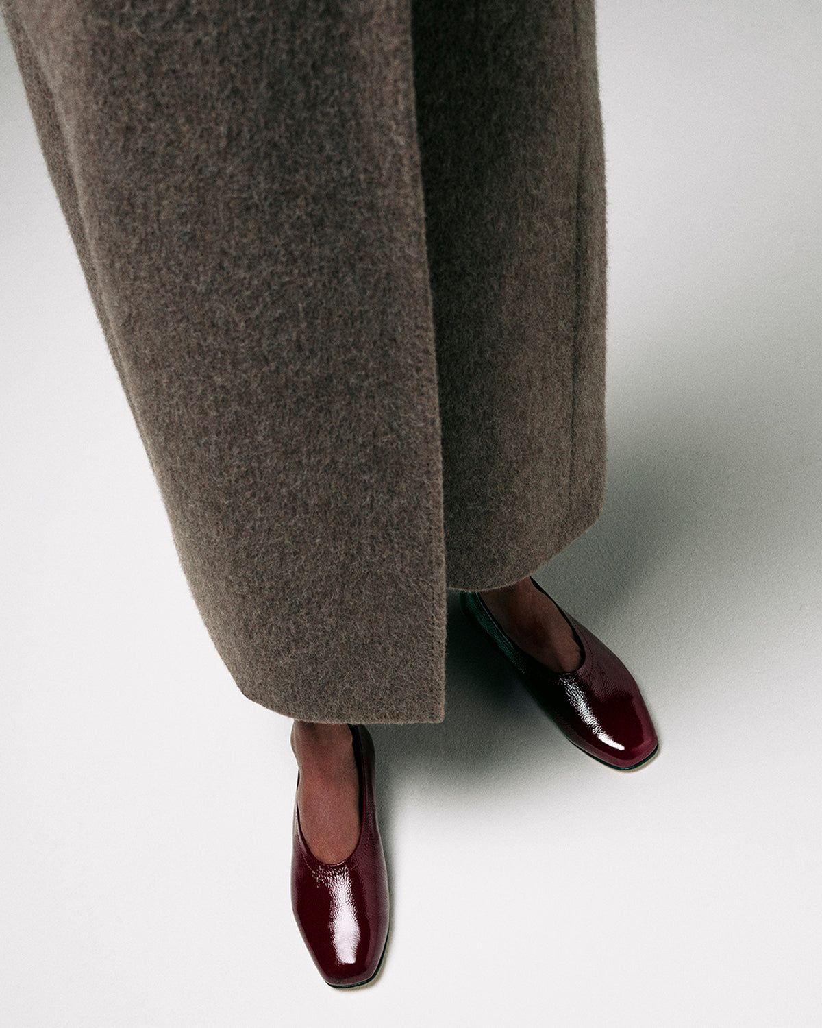 At its core, this collaboration celebrates the beauty of the familiar, reinterpreted with quiet refinement. The capsule brings together three of our signature silhouettes — The Foundation Flat, The Mary Jane, and The Glove Boot — each reimagined in exclusive finishes inspired by Whistles’ Autumn/Winter palette. Rich chocolate suede, black crinkled patent, and plum leather offer depth and warmth to enduring forms, harmonising texture with tone.