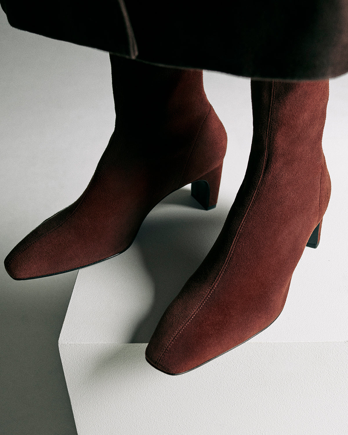 Handcrafted in Italy using premium suede in a rich chocolate hue, elevated subtly with central seam detailing and a structured square toe.