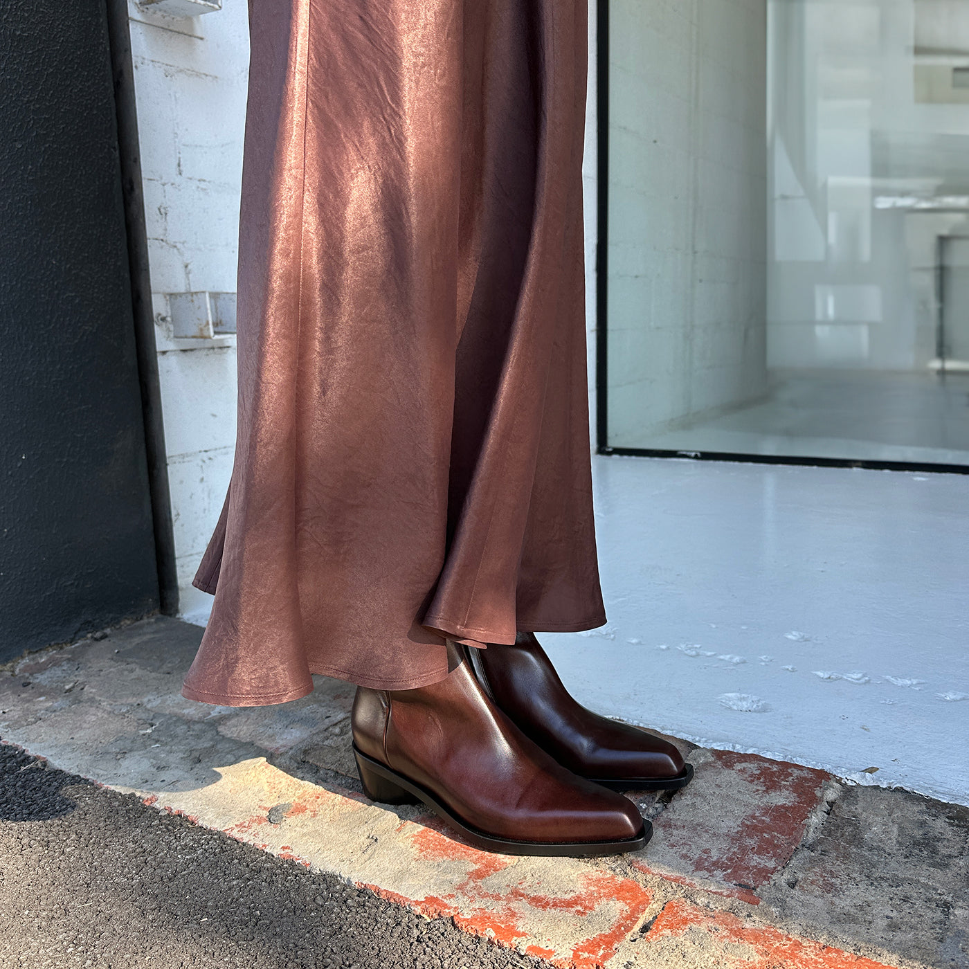 Introducing the City Boot. Grounded in the enduring ideas of modern luxury and versatile simplicity, these LWG-silver certified leather boots are a year-round wardrobe staple. Handmade in Italy, their squared-off toe and slanted 3cm sculptural block heel offer a timeless canvas for personal style. Adding a sleek finish to any look, the City Boot is a modern minimalist staple. Available in Black for a classic take or Chocolate for a rich accent that works back with existing wardrobe favourites.