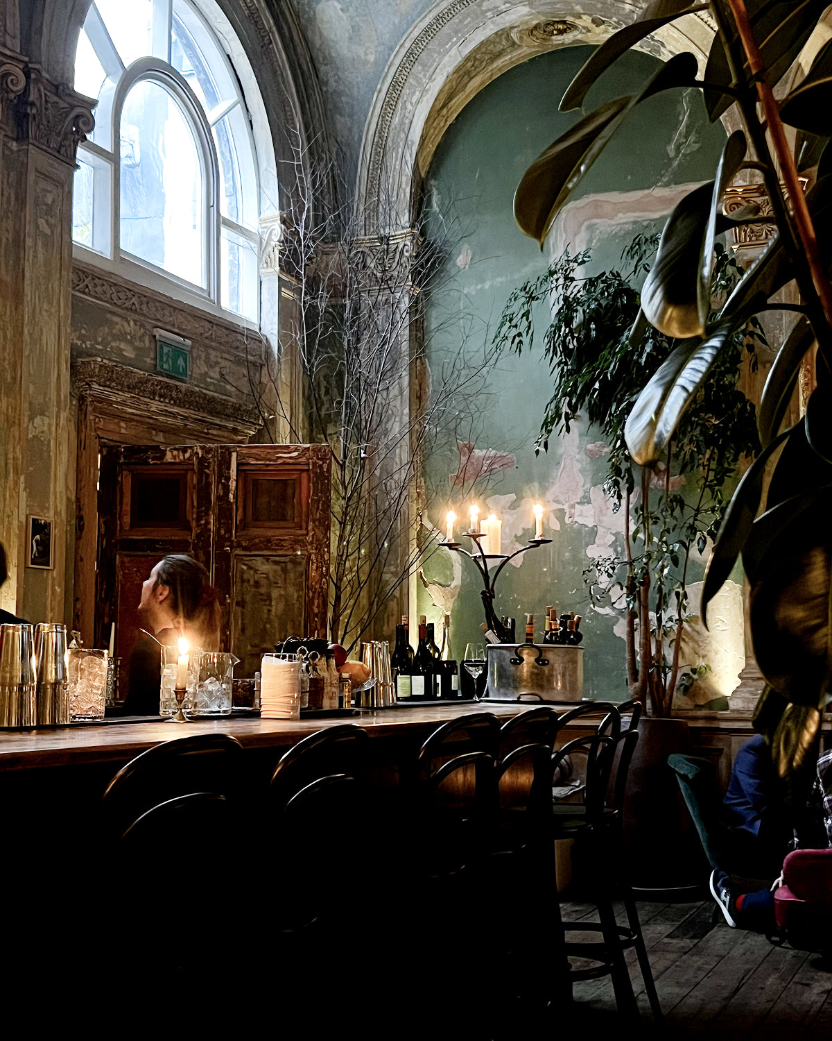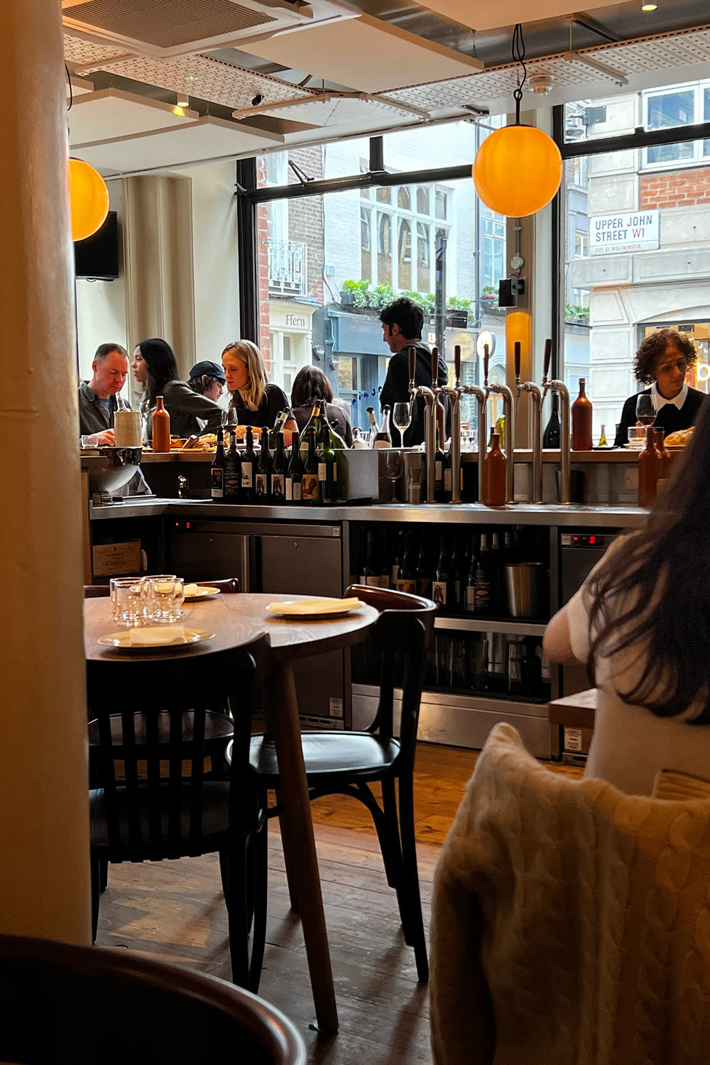 Sessions Arts Club, Clerkenwell : Considéré comme un havre de paix urbain, le Sessions Arts Club occupe l’ancienne salle à manger des juges de Sessions House, un magnifique bâtiment classé Grade II* à Clerkenwell. Avec sa salle à manger entourée de trois terrasses dotées de cheminées, son bar sur le toit et son jardin, on comprend aisément qu’il ait été conçu pour évoluer au fil des saisons. À la fois restaurant-bar et espace dédié à l’art et aux spectacles, sa programmation collective soigneusement sélectionnée attire une clientèle éclectique. La commande de Katja ? Un verre de vin blanc.