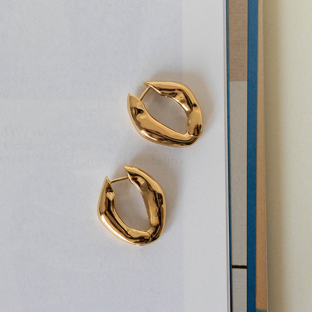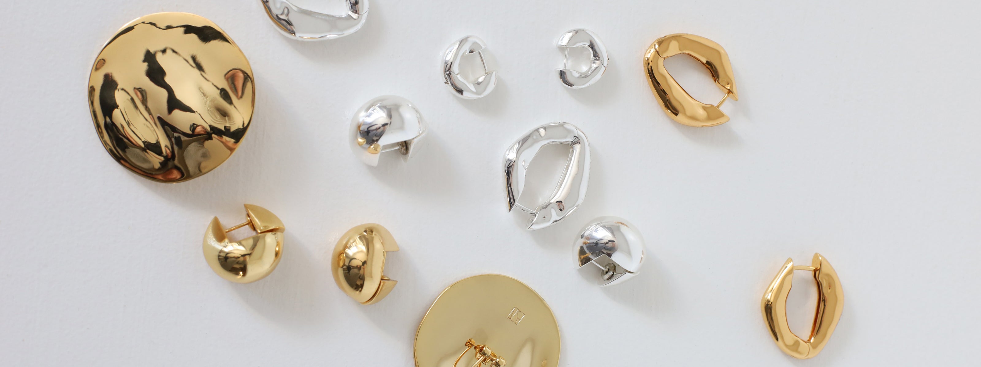 Our earrings use a unique combination of a brass base and are finished with a range of PVD techniques and 2.5-micron gold plating. While more accessible in price, PVD plating is highly precise in its gold hues and is only suited to certain designs. Gold-plated finishes using 2.5-microns are 2.5x as thick as a standard gold plating meaning the likelihood of needing to re-plate your pieces is low. It also offers the timeless gold look at a more affordable price.